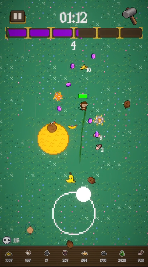 Monkey Survivors is an action roguelike horde shooter mobile game with random items and a crafting system. I made this with a group for my microgame project.